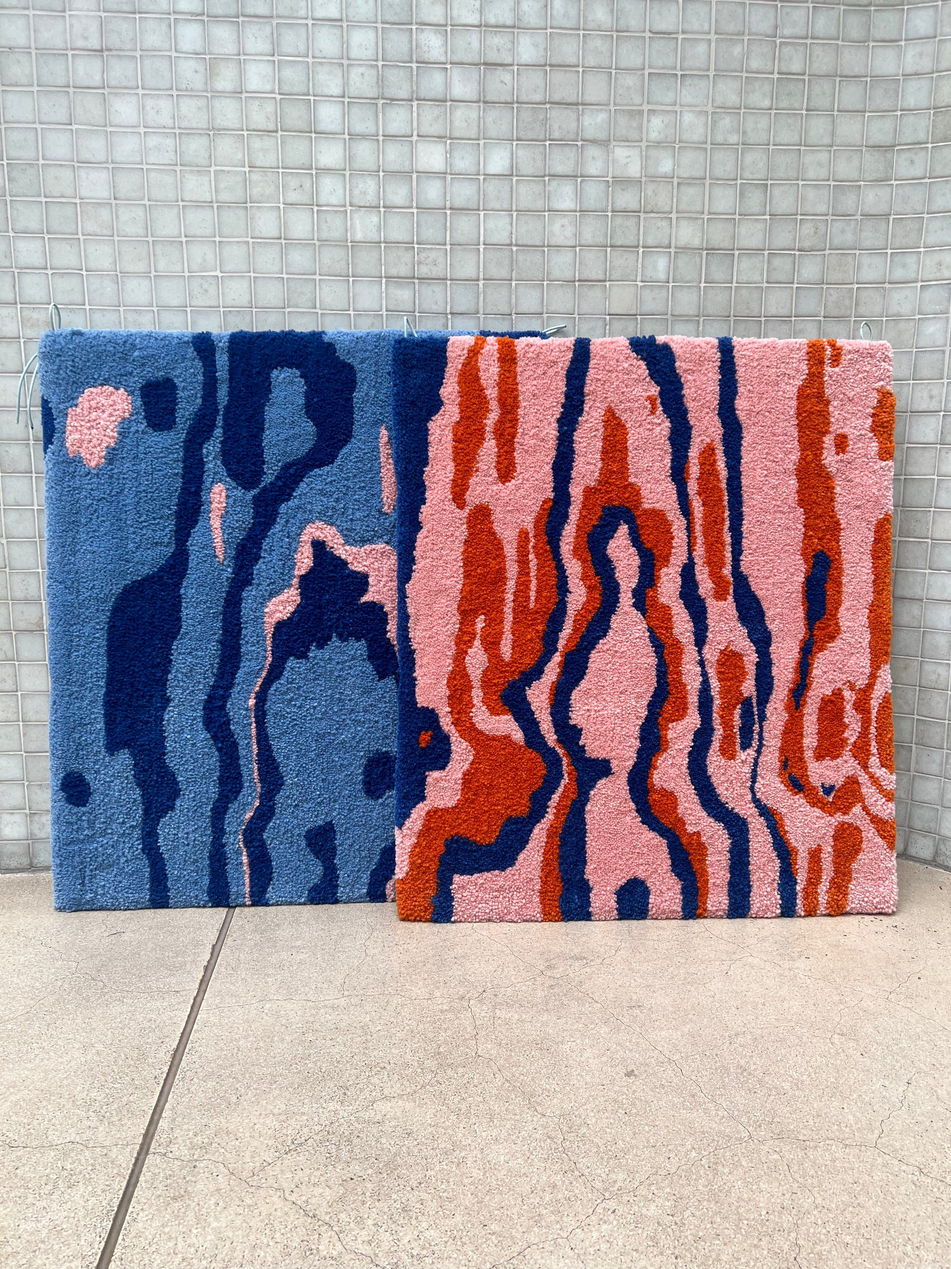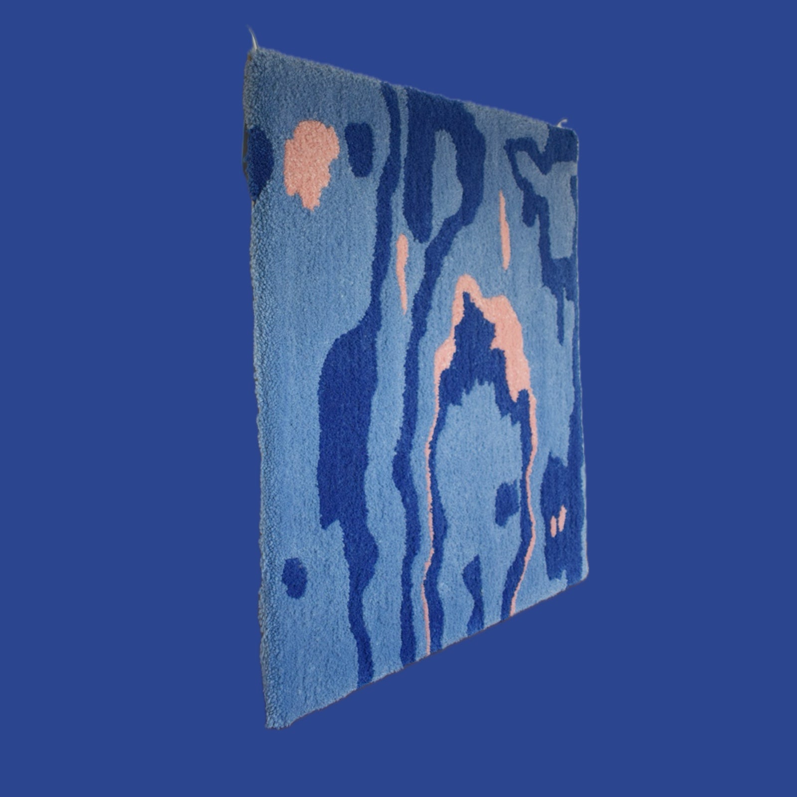 Made with cut-pile tufting gun and 100% wool. Hanging option attached to the back.